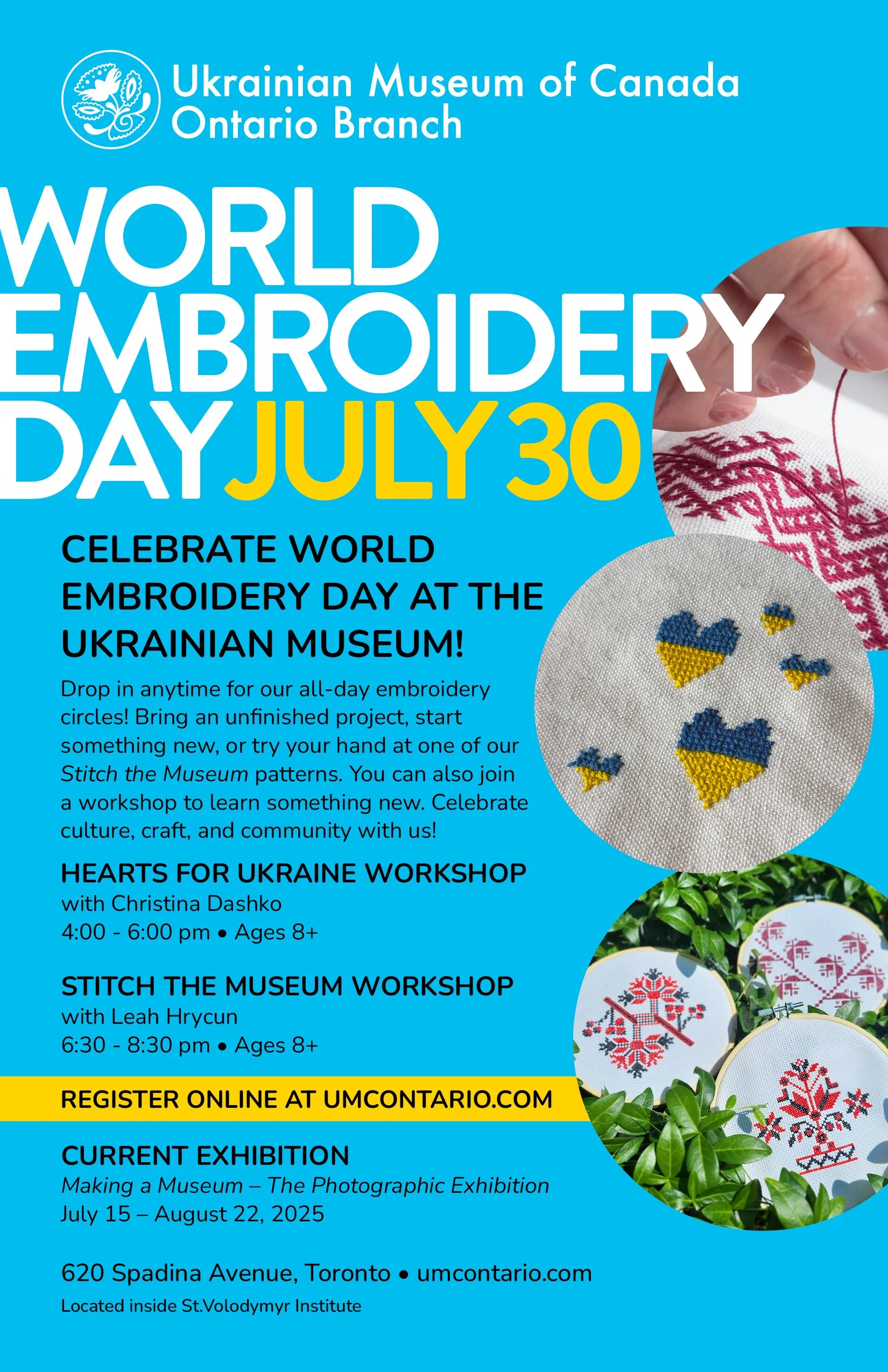 Did you know July 30 is World Embroidery Day? Join us at the Ukrainian Museum of Canada, Ontario Branch as we celebrate this global day of stitching, creativity, and connection.